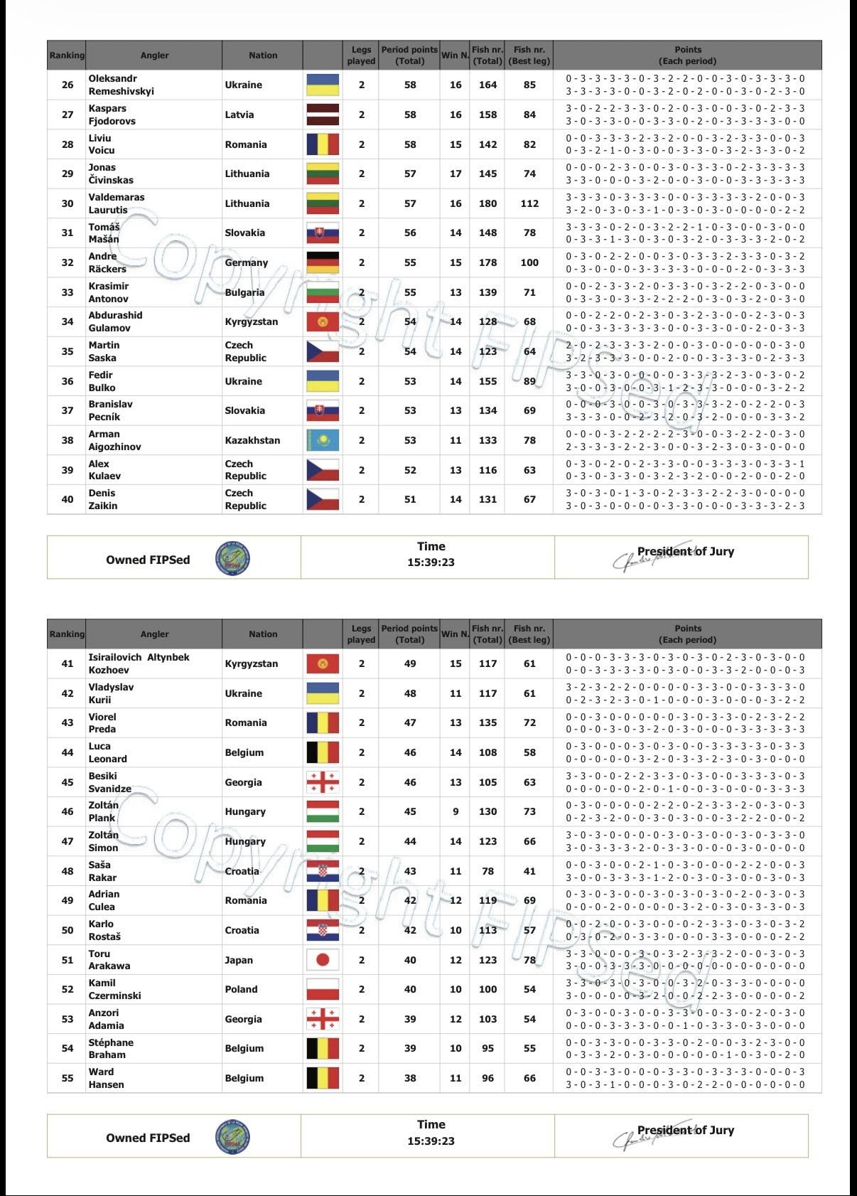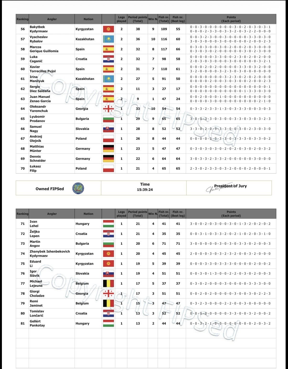 27.vieta Kaspars Fjodorvs, 58 perioda punkti, 158 zivis
