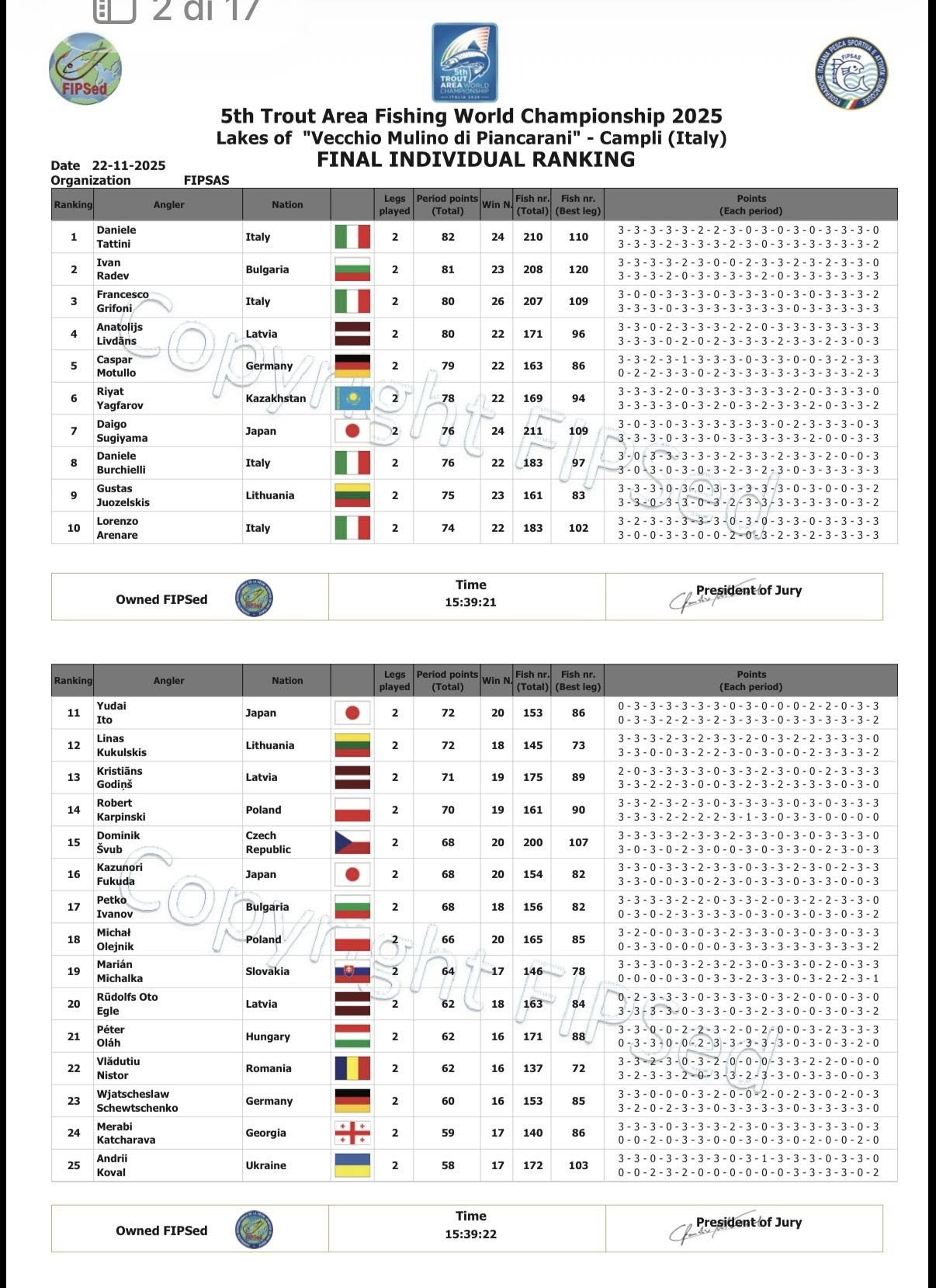 Īpaši jāuzsver Anatolija Livdāna izcilais sniegums individuālajā konkurencē, kur viņš izcīnīja augsto 4. vietu, atpaliekot no pjedjestāla ar vienu perioda punktu. Divu dienu laikā Livdāns kopā noķēra 171 zivi, uzvarot 22 periodos.